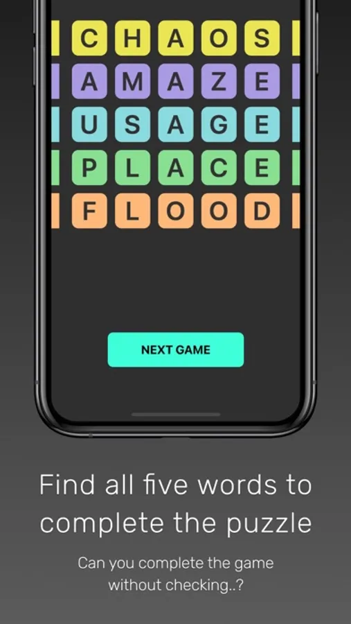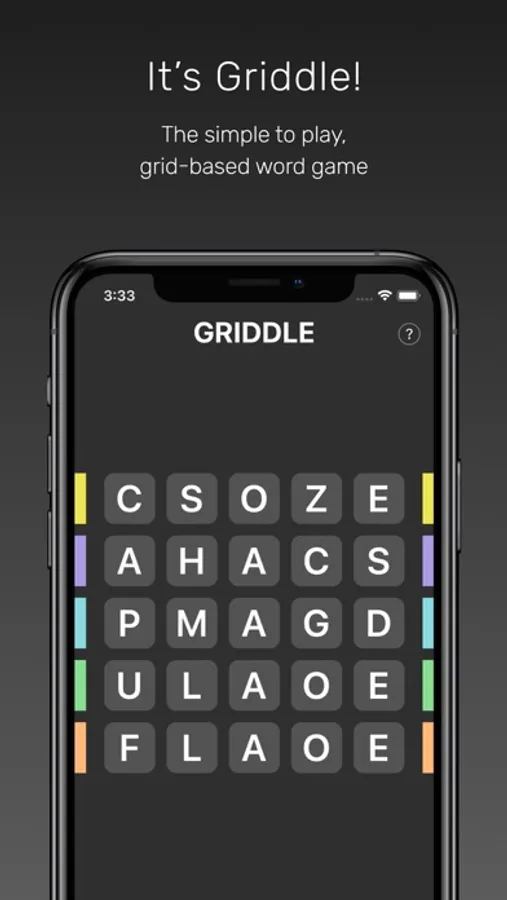 Griddle is an easy to play word puzzle. Simply slide the letters up and down to find the hidden words. Challenge yourself to find all five unique words to complete the game!