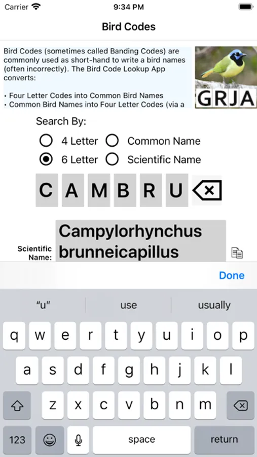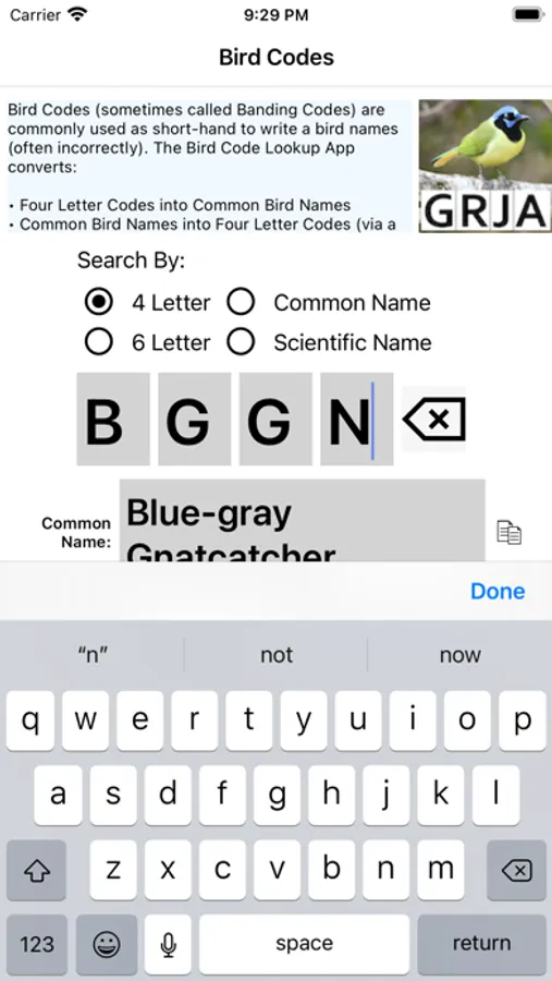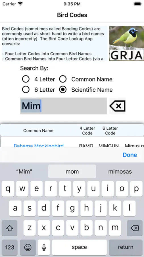The Bird Code Lookup App converts:
