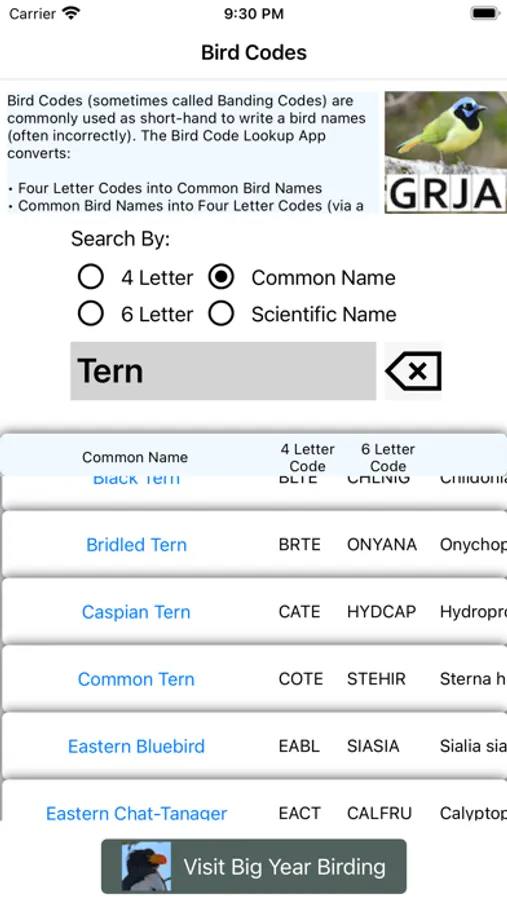 • Scientific Bird Names into Six Letter Codes (via a quick search)