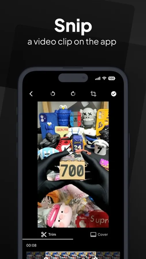 - Record shoppable videos for your products and share them on your social media accounts with your followers. You can record and edit videos and photos via our app - Snip a clip!