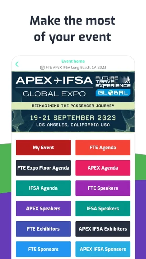 The FTE APEX IFSA app offers you the tools to make your visit to our events memorable and productive. Features include: