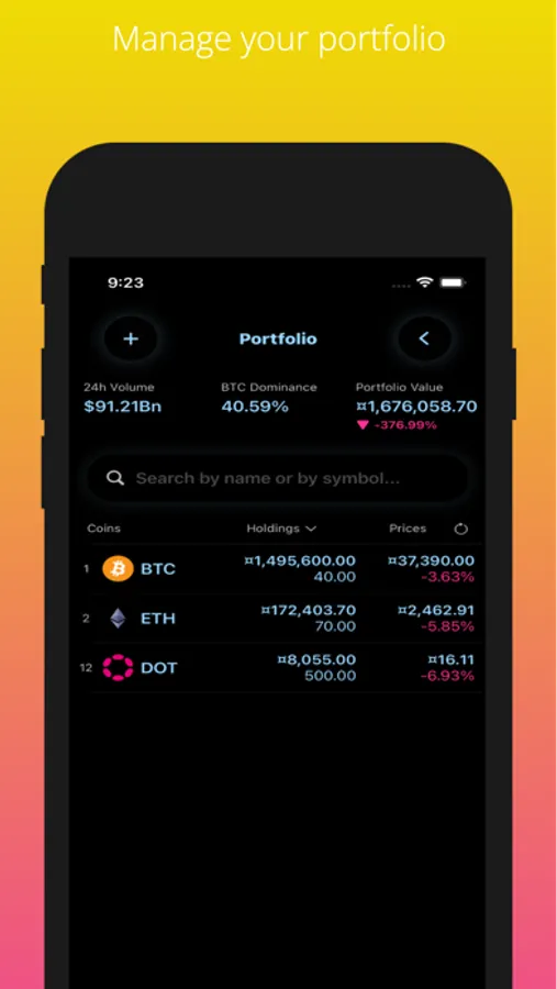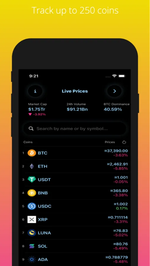 Create a custom selection for your portfolio of coins you wish to keep track of.