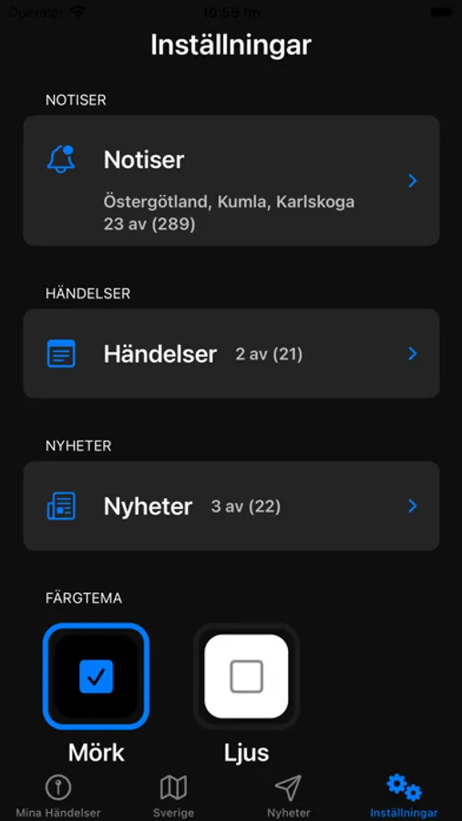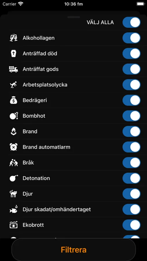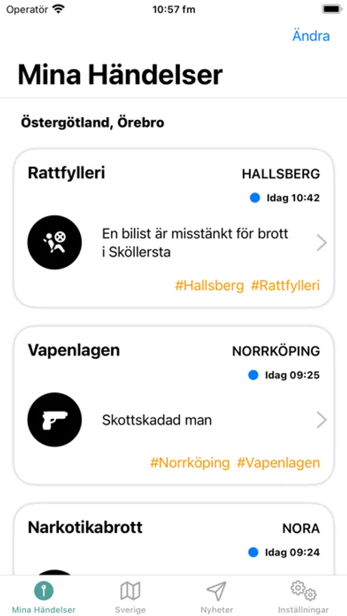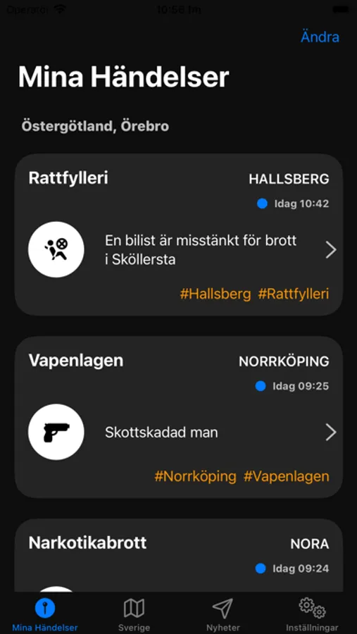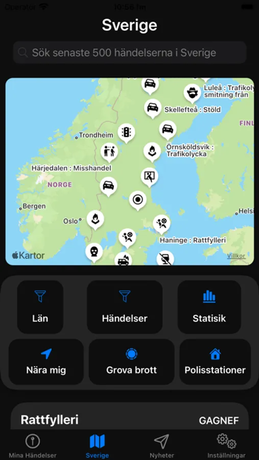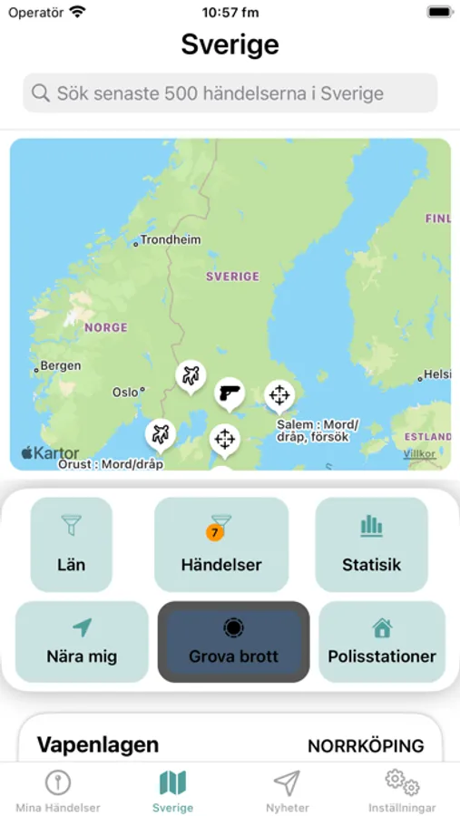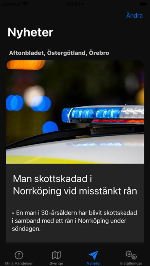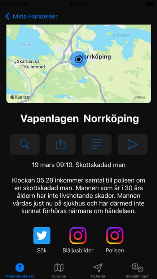 - Buttons to be able to read more about the incident on polisen.se or google, Aftonbladet or Expressen