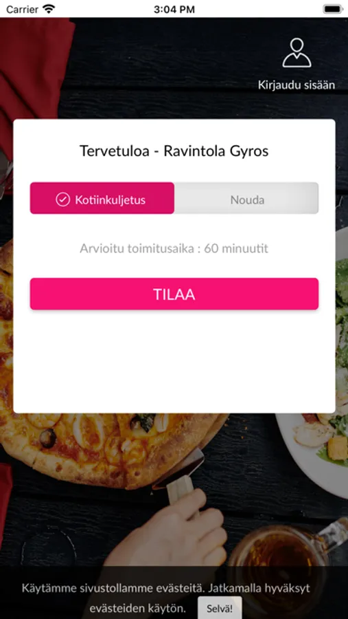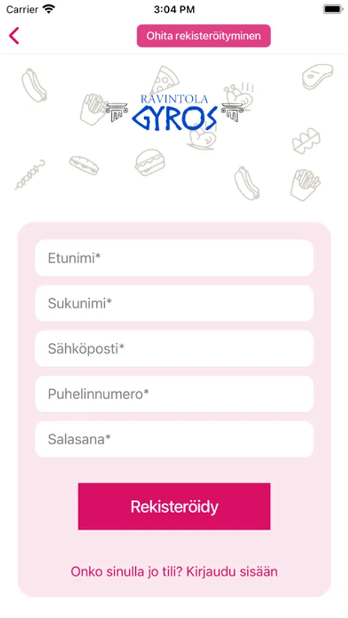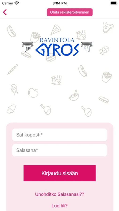 Tarjoamme tuoretta, maukasta ja monipuolista ruokaa, joka täyttää myös kasvissyöjien ravintotarpeet. Sinulle tarjoillaan makuja keittiöistä ympäri Eurooppaa. Valmistamme jokaisen ruuan juuri sinulle tuoreista raaka-aineista. Tervetuloa kansainväliseen ravintolaamme. Palvelemme suomeksi, englanniksi, venäjäksi, ranskaksi ja arabiaksi. Tervetuloa!Ravintola Gyros-sovellus pähkinänkuoressa:*Nopea ja helppo tapa tilata ruokaa kotiin puhelimella*Ruoan saamisen tulisi olla mahdollisimman helppoa. Siksi voit voit maksaa suoraan sovelluksessa monella eri maksutavalla.Mikä vain sinulle parhaiten sopii.Jos sinulla on kysymyksiä liittyen palveluun voit lähettää meille sähköpostia osoitteeseen info@ravintolagyros.fiwww.ravintolagyros.fi