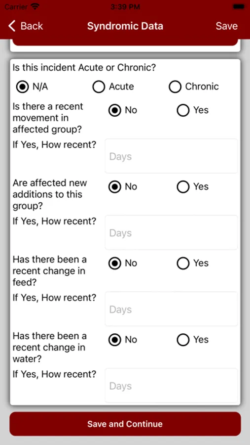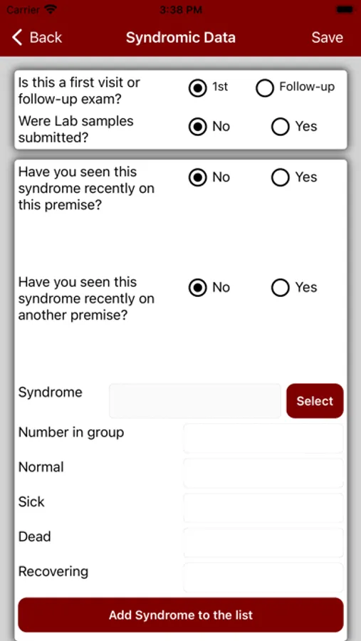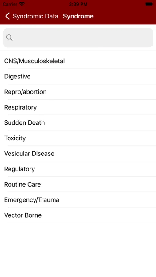 Veterinary Surveillance System (VSS) app provides veterinarians a tool to access and input disease information. The information is stored in a central database, monitored by artificial intelligence, and reviewed by a veterinary epidemiologist. The Veterinary Surveillance System (VSS) app provides real-time information to veterinarians and state-federal regulatory veterinarians concerning the location and prevalence of disease syndromes in large animals. In addition, it allows veterinarians to develop a diagnostic plan based on current surveillance data.