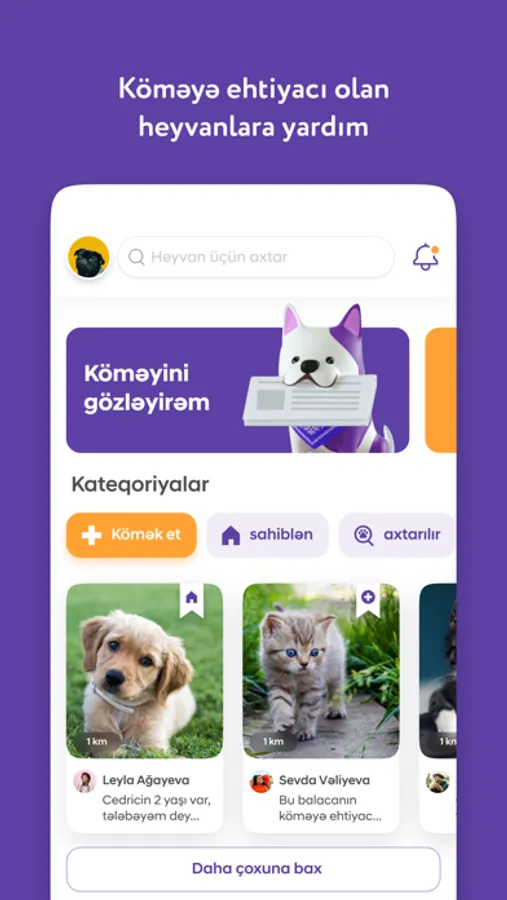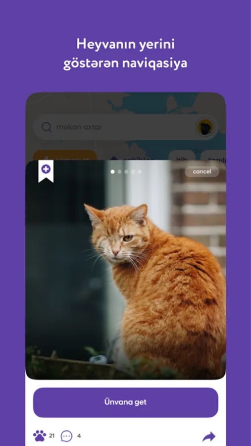 Burada istifadəçi köməyə ehtiyacı olan heyvanın vəziyyətini və yerini həmin ünvanın ətrafında olan istifadəçilərə bildirmək üçün pin-post kimi xəritə üzərindən paylaşa biləcək.