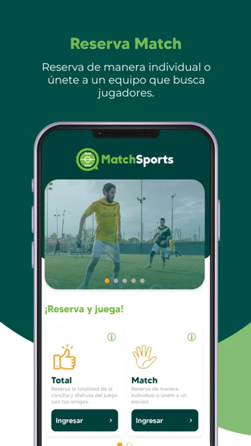 Match Sports te ofrece el servicio de reserva de canchas de una manera sencilla y rápida. Escoge el tipo de reserva ya sea individual en equipo o total, la ubicación, la hora, y pagas con tu tarjeta de débito o crédito preferida y en pocos segundos está agendada la cita para practicar tu deporte preferido. Aquí encontraras todos los deportes dentro de una app, con los mejores complejos deportivos de tu localidad. Además, puedes pagar de manera sencilla sin perder el tiempo en llamadas o mensajes. Match Sports innova en la manera de reservar una cancha con tres tipos de reservas. La primera: reserva haciendo MATCH, reserva de manera individual y solo paga tu parte, ya que encontraras partidos de tu deporte preferido donde puedes unirte. La segunda: reserva TOTAL, tan solo haz un único pago y asiste al juego con las personas que tu prefieras y la tercera: COMPARTIDA aquí reservas tu cancha preferida y envías el link a tus amigos y lo mejor de todo es que el pago se lo dividen entre todos. Si no conoces una cancha cerca de ti en la app encontrarás la dirección de todas las canchas gracias a que están vinculadas con google maps. Por otra parte, la app te ofrece el servicio de facturación electrónica.