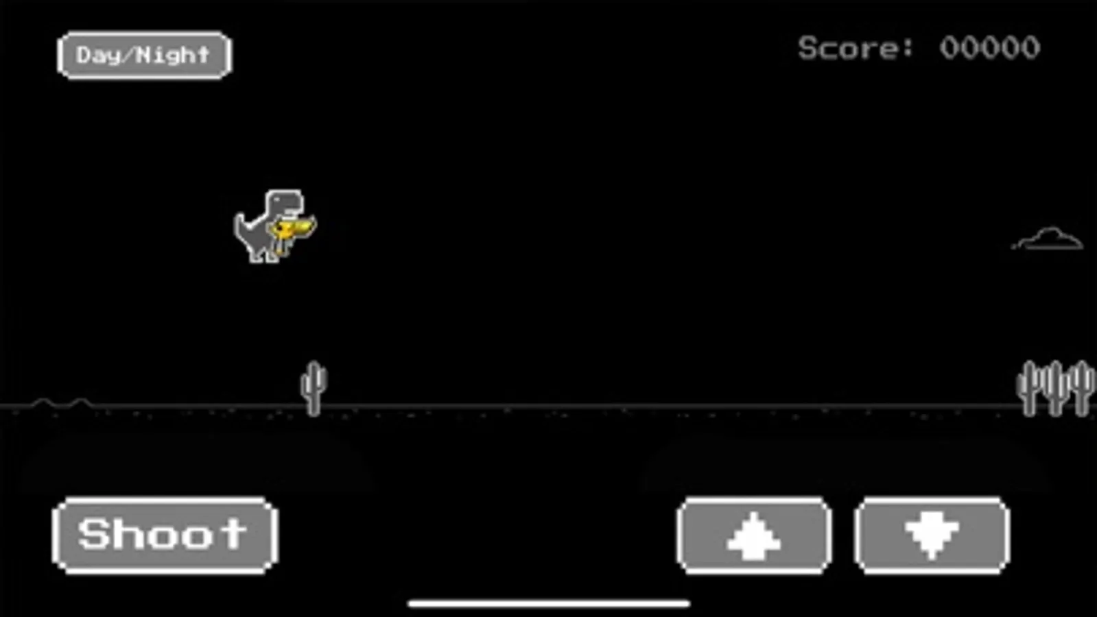 Let the dinosaur shoot the cactus and the birds, also you can jump and duck to avoid them!