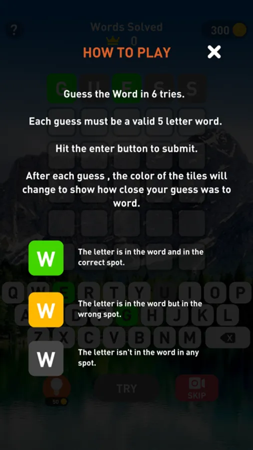How the game works - every time you make a guess, the letter color tells you how close you are to finding the solution: