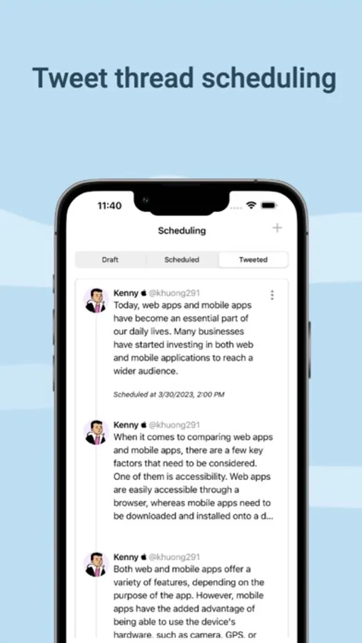 Our user-friendly interface and intuitive features make managing your Twitter account a breeze. With our app, you'll be able to focus on what really matters - building your brand and engaging with your audience.