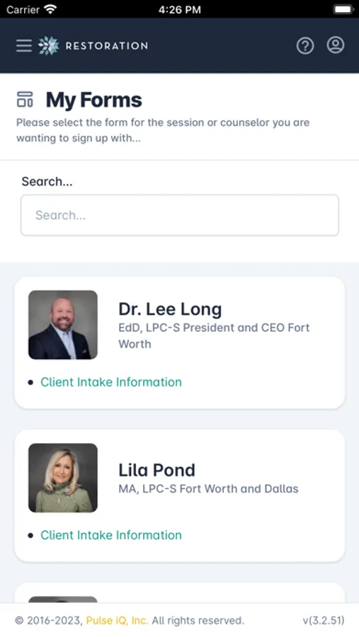 Counseling patients are able to seamlessly fill out their intake forms prior to their appointments. Counselors are able to then see those forms and archives in an online repository and serve their patients in the most effective manner.