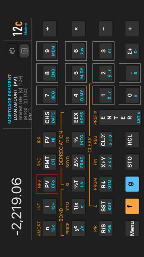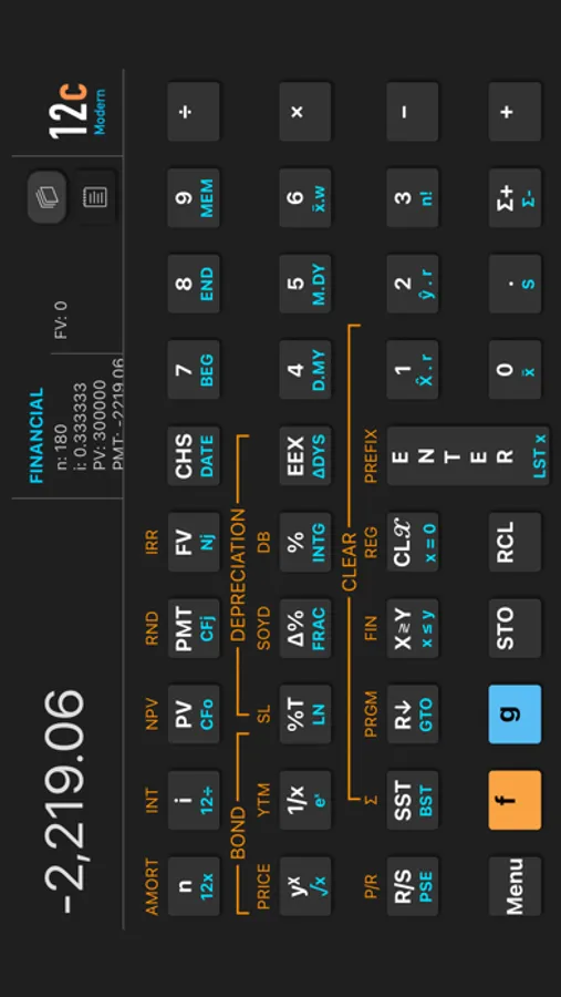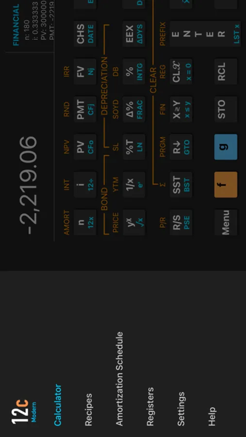 The 12c Modern implements the same exact functionality as the classic HP 12c financial calculator. In addition to providing 12c's look & feel and functionality, we have modernized the app with features such as recipes, interactive prompts, and register views.