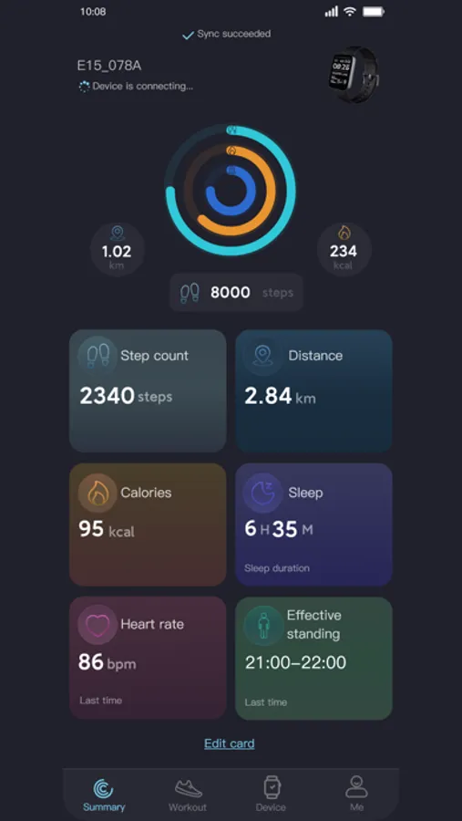 Noisefit Sync is mainly used to connect Bluetooth bracelets to assist users. Record and display the user's exercise and health status in real time, including heart rate, sleep, exercise and other information. At the same time, it provides users with basic settings such as Bracelet reminder, equipment search and factory recovery.