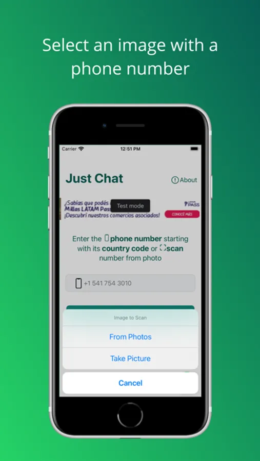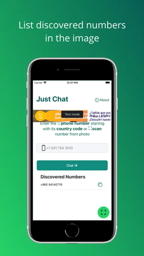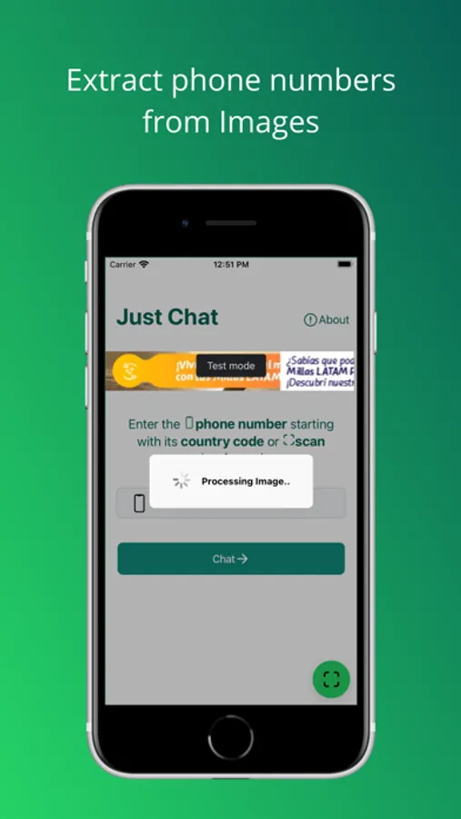 Get phone numbers from captured images, screenshots, or text. Share with JC an image, screenshot, or a line of text that has a phone number you want to have a chat with, the application will detect, extract and list the phone numbers it has identified giving you an option to start a chat with your desired chat platform.