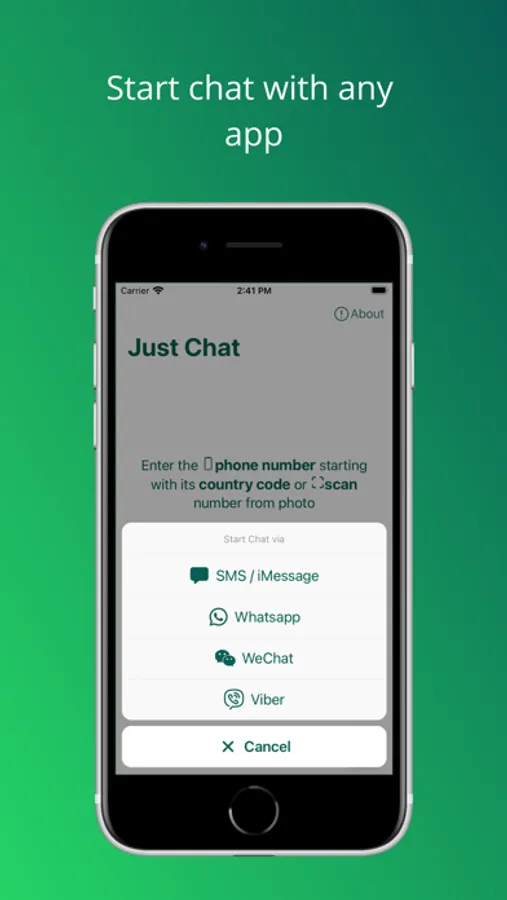 JC gives you the opportunity to chat with any number that is registered on any of the currently supported platforms such as WhatsApp, WeChat, or Viber without adding it to your contacts first. No sign-in is required, send without unnecessary filling up of your contact list.