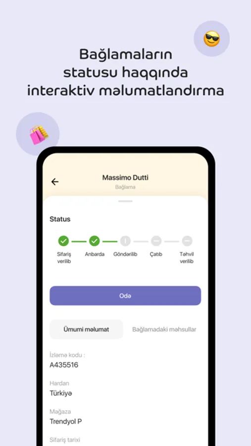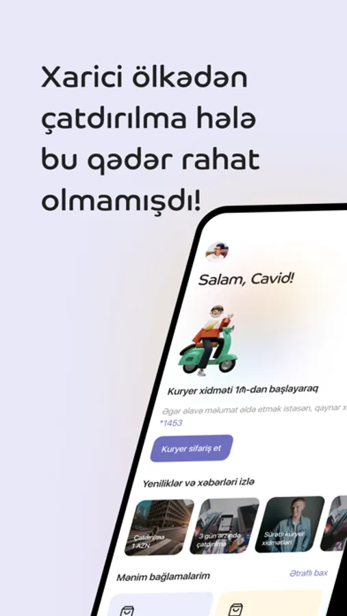 - bağlamaların çatdırılması üçün ödəniş və kuryer sifariş edə bilərsiniz