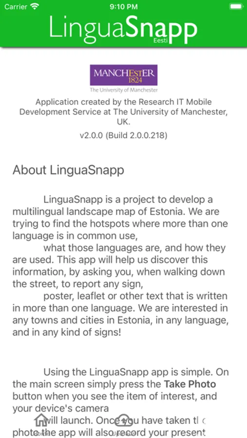 LinguaSnapp Estonia is a project to develop a multilingual landscape map of Estonia. App users can help discover the hotspots where more than one language is in common use, and what those languages are, by uploading photos of the multilingual signs, posters, leaflets and other texts around them. We are interested in towns and cities from outside Estonia too; in fact, anywhere in the world!