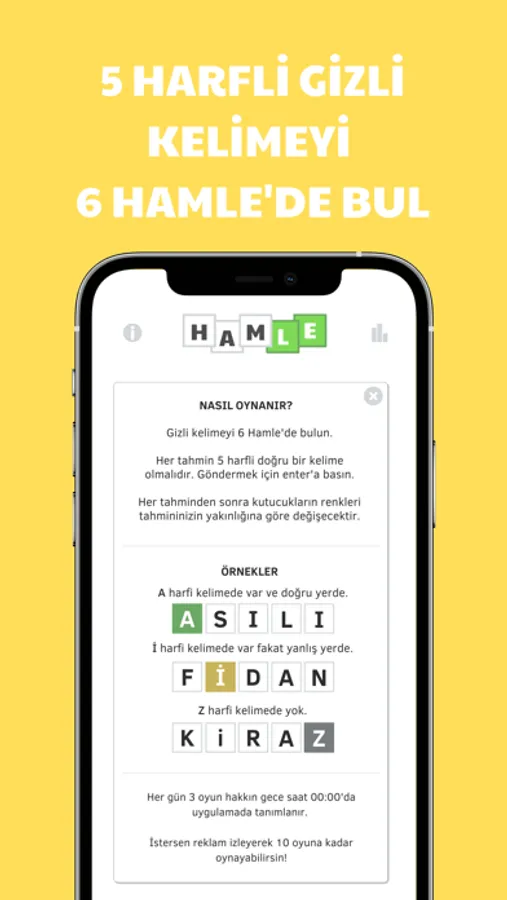Her gün 3 reklamsız oyun hakkın gece saat 00:00'da uygulamada tanımlanır. İstersen reklam izleyerek günlük 10 oyun oynayabilirsin!