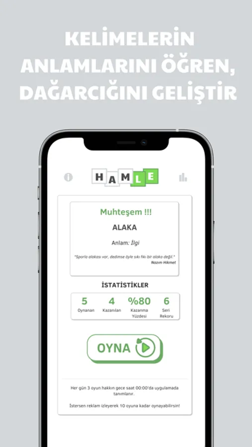 - Her gün yeni kelimeyi bekleme, 10 oyuna kadar oyna!