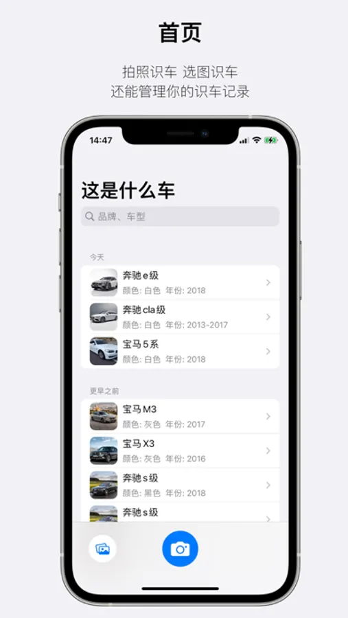 这是什么车,是一款拍照识车(选图识车)工具,能识别常见的近3000款家用小汽车的车型和价格,准确率可达90%,同时可查看对应车型的图集和百科介绍信息,是你手中的车型信息识别神器。