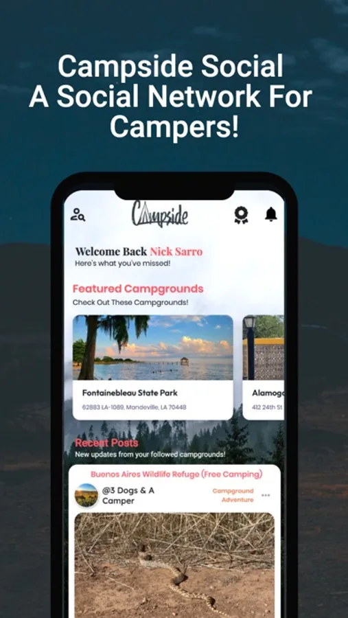 With Campside you’ll be able to connect with other campers at your campground. Create, plan, and attend unlimited recreational activities; fireside chats, hiking, biking, etc. Finally, a platform to share your adventures! Where will you go?