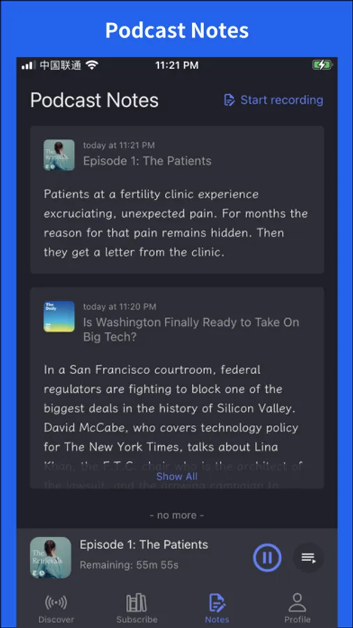 - Podcast notes, you can record your thoughts while listening, and you can quickly insert them into the current point in time