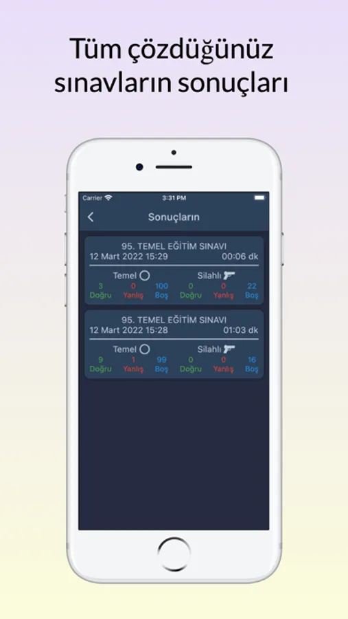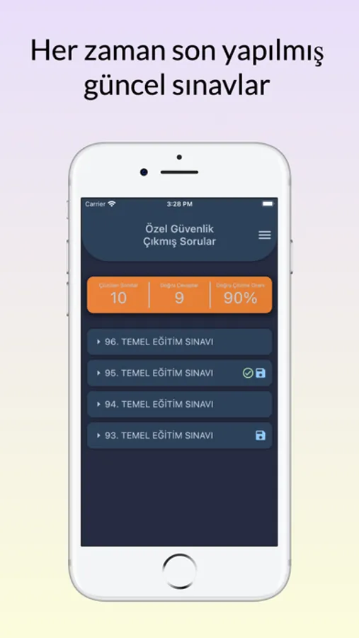 - Sade ve şık tasarımıyla özel güvenlik sınavına hazırlanırken yanınızda olacak uygulama.