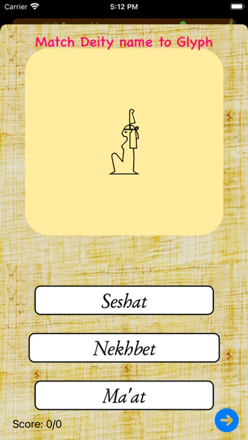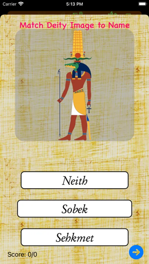 50 Deities with cards for both Hieroglyph Names, and with Images