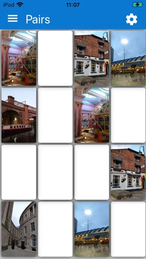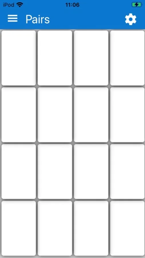 When the game is run, a 4 by 4 grid of blank squares appears, each square representing a card. When a card is tapped, an image is shown on the card. When another card is clicked, an image is also shown on that second card. If the two images are the same, then the cards are considered to be matched, and will not change again for the rest of the game. If the images do not match, then the cards are considered to be unmatched, and cards must be turned back over by tapping on any card. These steps are to be repeated until all matching images have been found, and a "Congratulations" window appears.