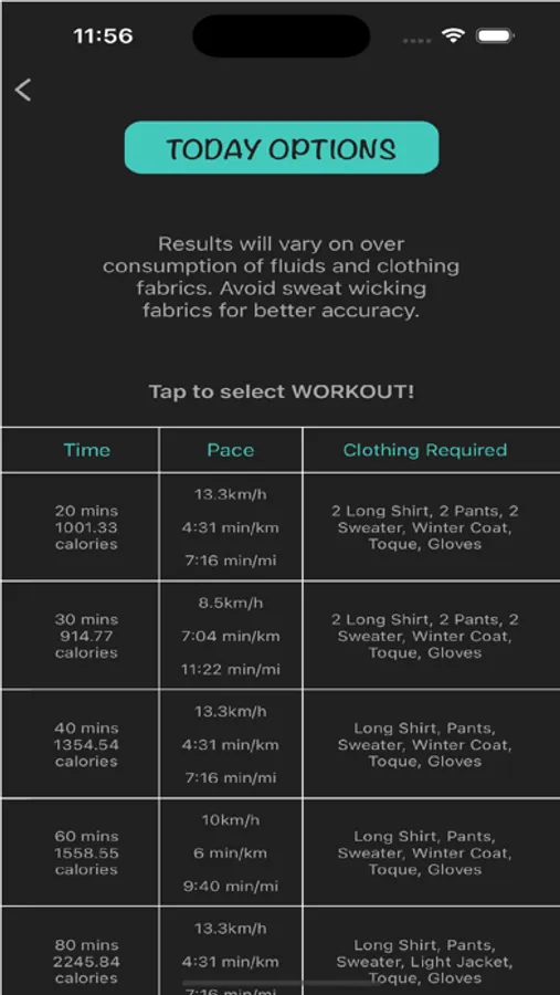 • App generates workouts to achieve results based on time, pace, and weight loss
