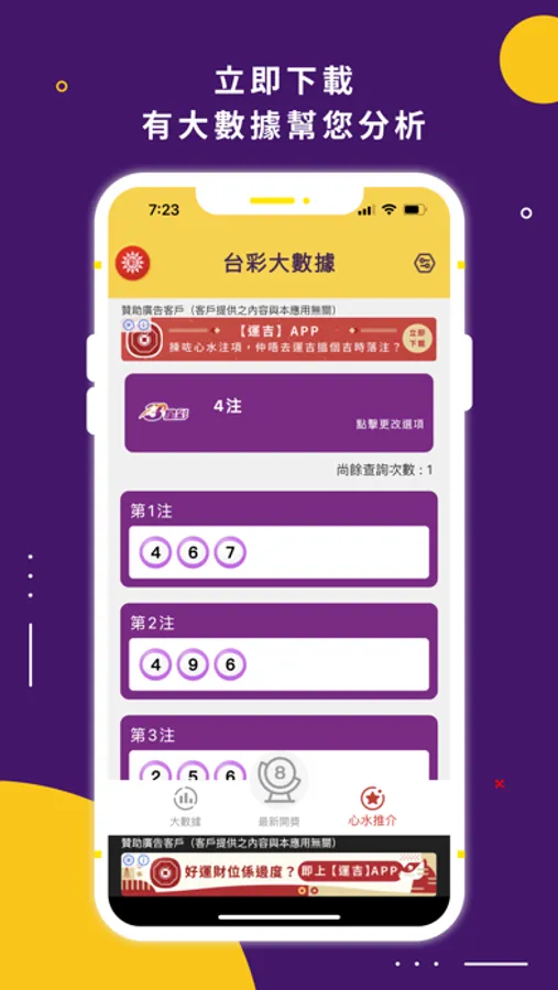 The "Taiwan Lottery Big Data" APP helps you analyze the trend of each Taiwan lottery and win the jackpot. Hurry up and download the APP!