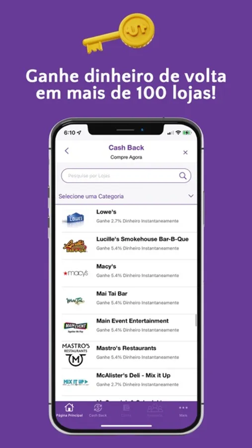 O meu app conta com o melhor serviço de Cash Back para brasileiros como você, que vive aqui nos Estados Unidos.