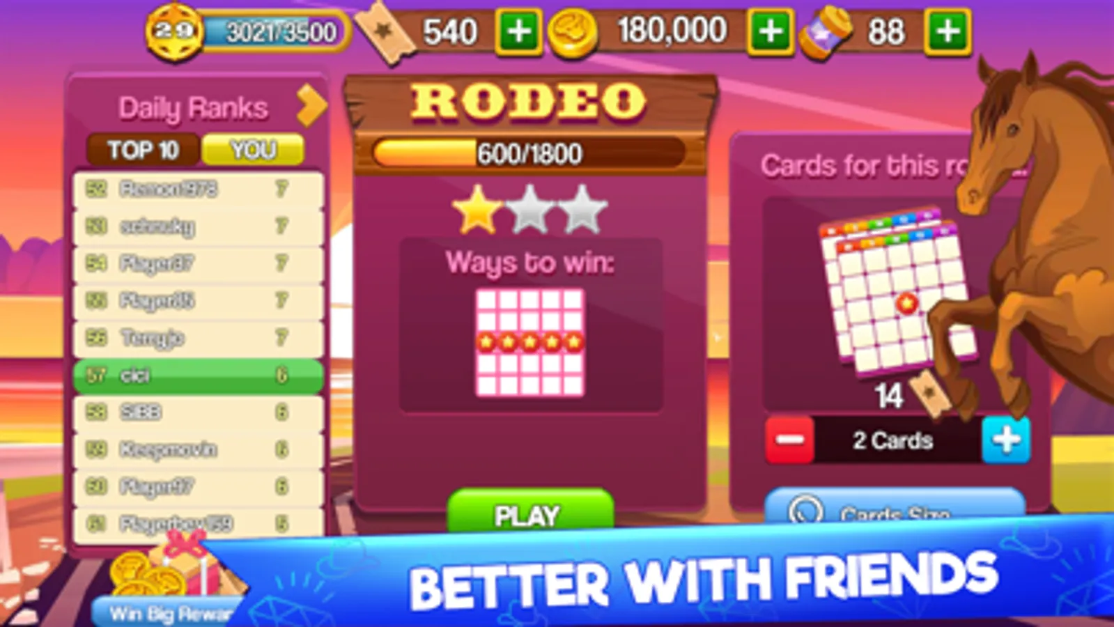 Win huge rewards and experience points as you advance through Bingo Tournaments.