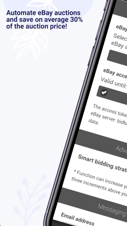 With bidbag, you can automate your bids on eBay auctions. Define your highest bid for an auction and leave the work of the bidbag app. This places your bids seconds before the auction ends, even at night and on weekends.