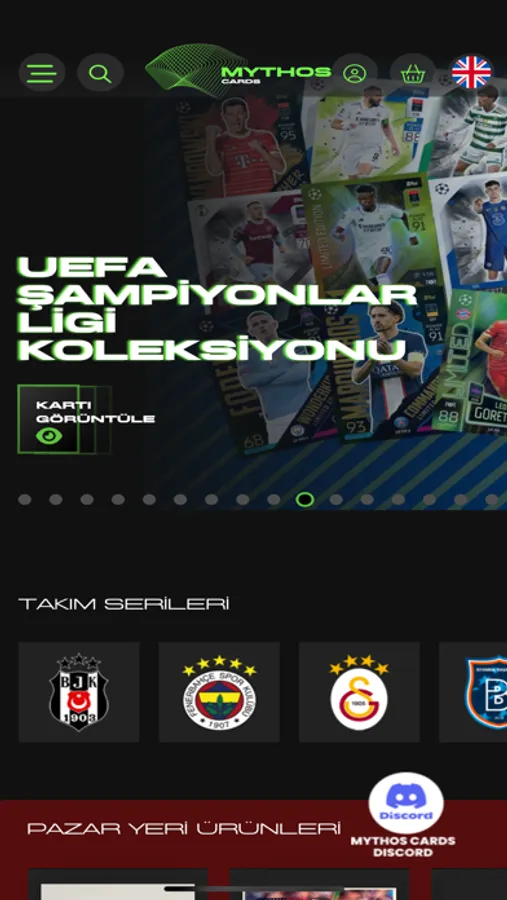 Bunun yanında koleksiyonerlerimiz için çok özel yeni bir alanımız da var: Mythos Pazar Yeri. Burada ülkenin dört bir yanından koleksiyonerler sadece Mythos Cards ya da distribütörü ve pazarlama ortağı olduğumuz dünyanın en büyük kart şirketi olan Topps ürünleri değil, aynı zamanda dünyada koleksiyoner kart üreticisi olan tüm markaların kartları da sahipleri tarafından satışa sunuluyor ve Mythos Cards güvencesiyle alış veriş ve gönderim sağlanıyor. Siz de kartlarınızı buradan satabilir, beğendiniz serilerden kartları da satın alabilirsiniz.