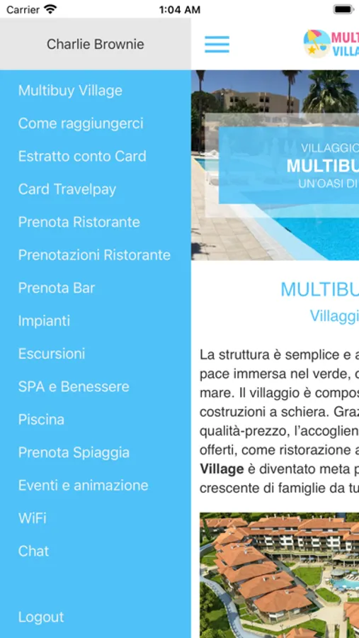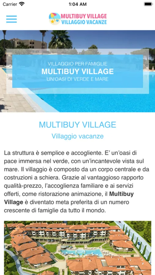 App del Villaggio Vacanze Multibuy Village, registrati ed accedi per usufruire dei servizi del villaggio. Prenota bar, ristorante, escursioni, eventi. Segui il programma dell'animazione e rimani informato sulle attività giornaliere.
