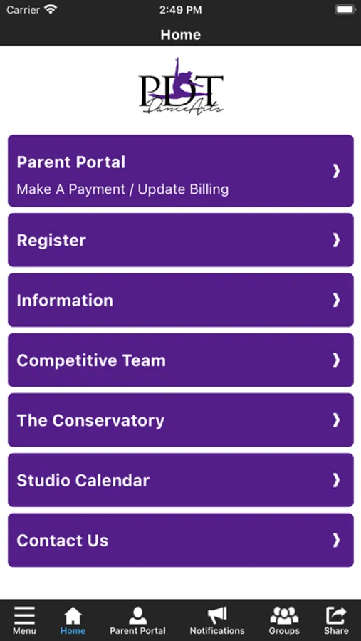 The PDT Dance Arts app is an easy-to-use, on-the-go way to access everything PDT has to offer right from your smartphone.