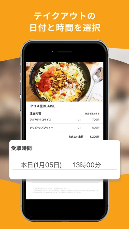 受け取りたい時間を指定し、アプリ内でラクラク簡単に事前注文・決済を済ませることができます。