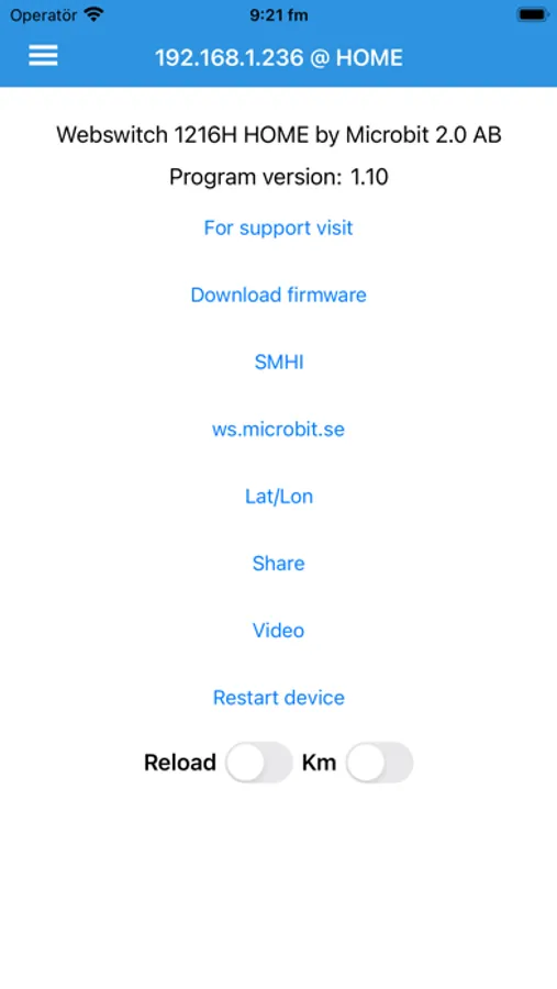 Webswitch 1216H is a remote controlled switch with 5 relay outputs (230V/16A) which can be controlled independently via the built in home page from any network connected device having a web browser(PC, Smart phone, etc). The Webswitch is fully standalone and is connected directly to the local network. Webswitch 1216H may also be controlled by this iPhone application.