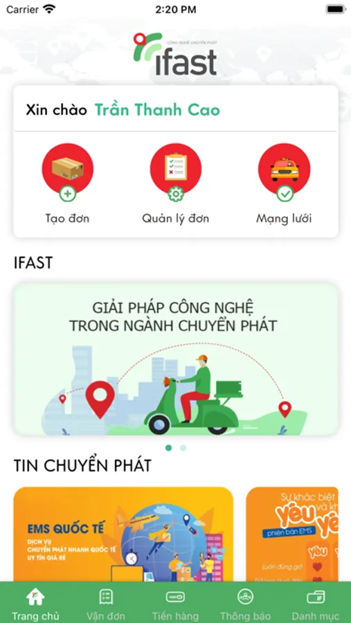 iFastExpress là ứng dụng hệ sinh thái chuyển phát số 1 Việt Nam, hỗ trợ chuyển phát nhanh hàng hóa, giúp bạn quản lý và tạo đơn hàng một cách nhanh chóng, thuận tiện. Với mạng lưới bưu cục rộng khắp, cùng hạ tầng công nghệ hiện đại, iFastGroup đảm bảo sẽ giúp bạn giao hàng nhanh nhất với chi phí tiết kiệm nhất.