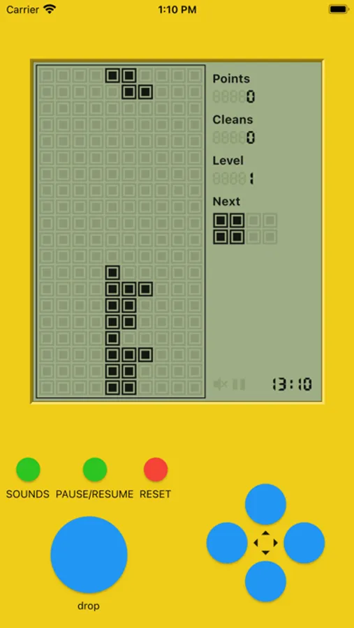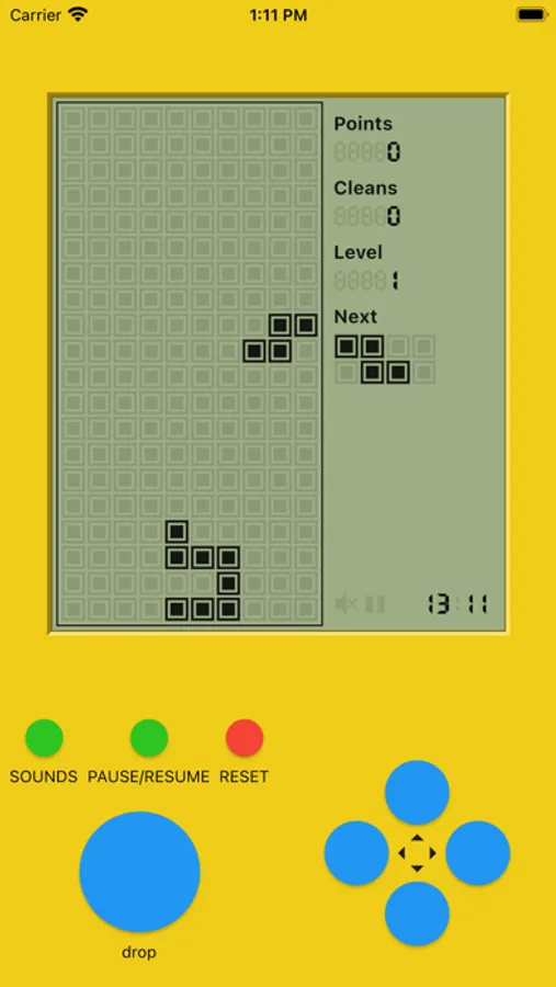 由小方块组成的不同形状的板块陆续从屏幕上方落下来,玩家通过调整板块的位置和方向,使它们在屏幕底部拼出完整的一条或几条。这些完整的横条会随即消失,给新落下来的板块腾出空间,与此同时,玩家得到分数奖励。没有被消除掉的方块不断堆积起来,一旦堆到屏幕顶端,玩家便告输,游戏结束。