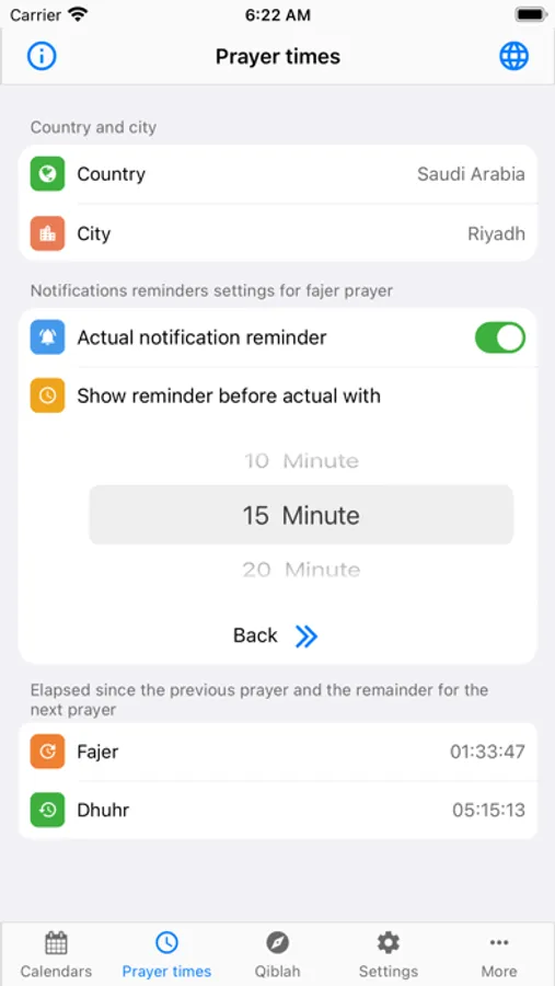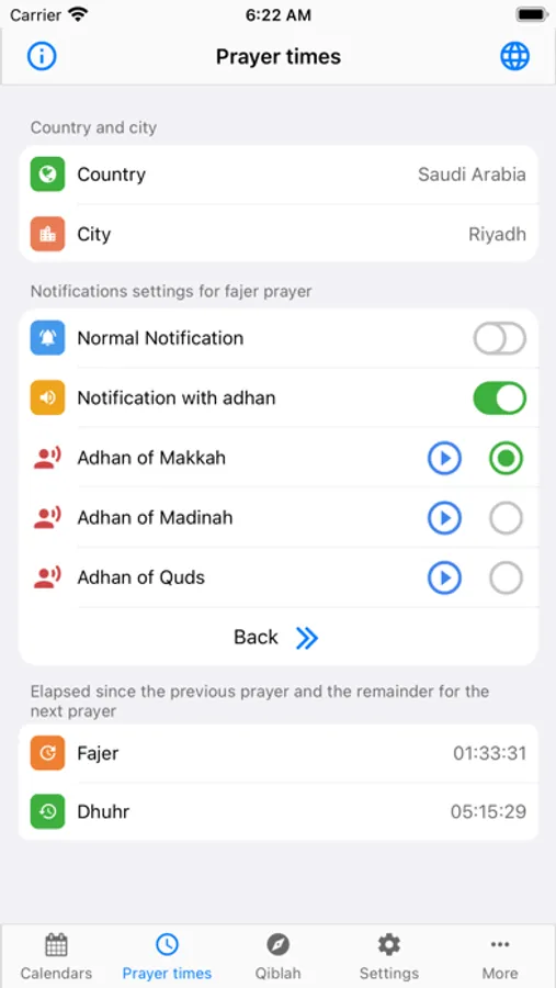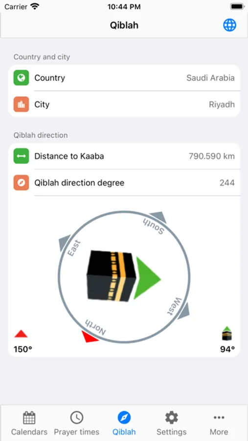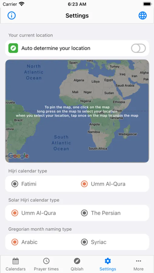 - Prayer times and Qibla direction according to your current location or determine your location from the map.