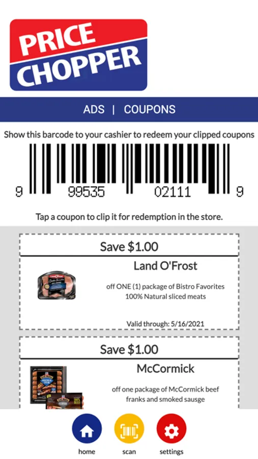 The Price Chopper app enhances your grocery shopping experience. As you shop at a participating store, use this shopping companion app to help save you more money and receive special alerts. Along with being able to view store ads and coupons, the SmartZone feature allows the store to send deals and announcements to your phone.
