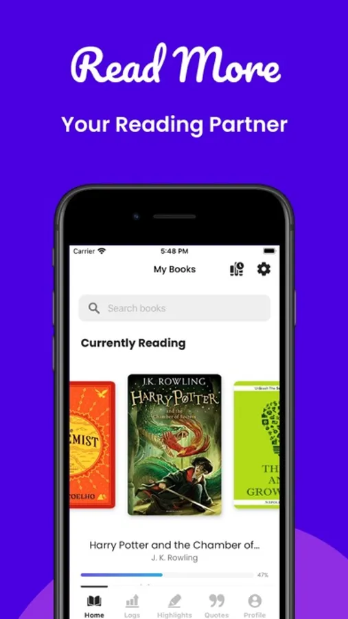Read More does not contain any books, it just logs your reading and saves your quotes. It does not encourage speed reading but encourages you to read more books. Reading more not only helps you to learn more things but also helps you to utilize your time which goes to waste on your phone or in any frivolous activity.