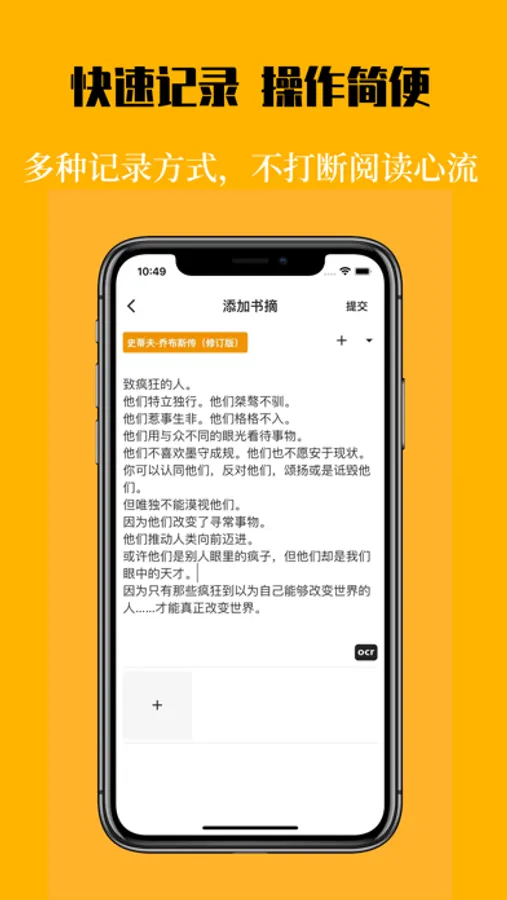 【简化记录】提供多种输入方式:文字、图片、OCR,操作简单,快速记录,不打断读书心流~
