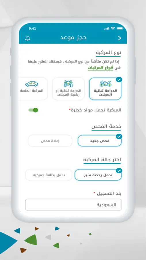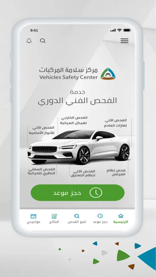 The official application for booking periodic technical inspection appointments for vehicles in approved centers in the Kingdom of Saudi Arabia. This application is managed by the Vehicle Safety Center which is part of Saudi Standards, Metrology and Quality Organization SASO.