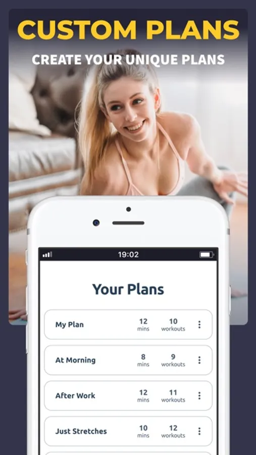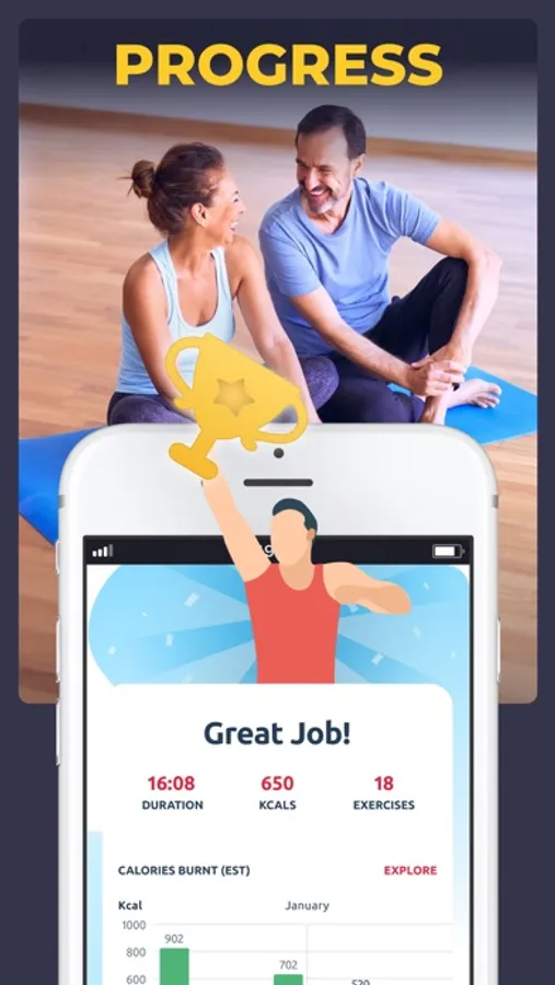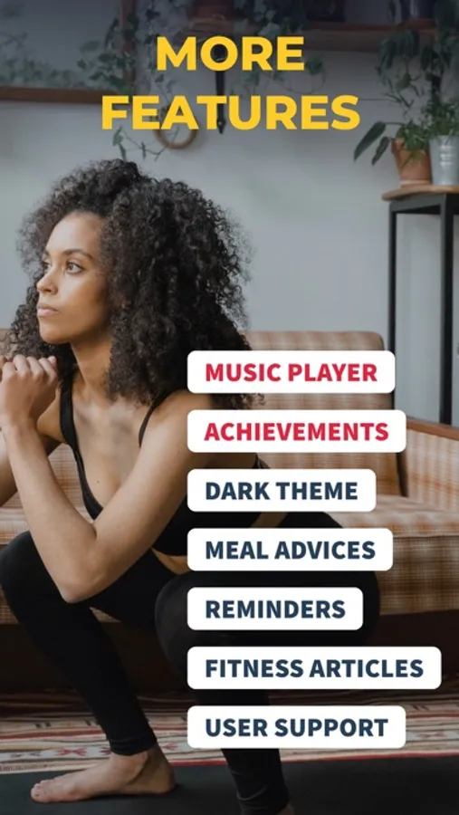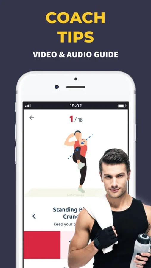 You can do all workouts at home, so no equipment, gym or coach are needed. You can easily track burned calories and weight loss on progress page.