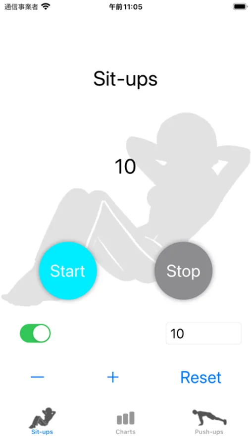 Press "Start" to start the measurement. It is counted when you do push-ups.
