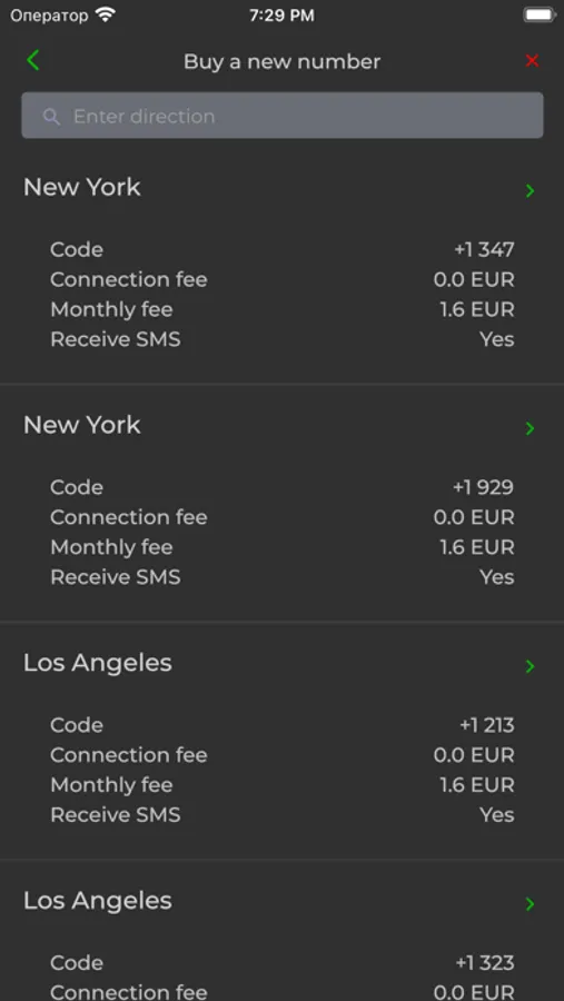 - Calls from any purchased number. The system selects the cheapest route for the call.