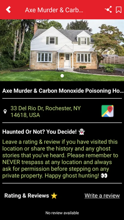 Read the ratings & reviews to learn the history and ghost stories of each location or add your own rating & review to decide if a location is Haunted Or Not?